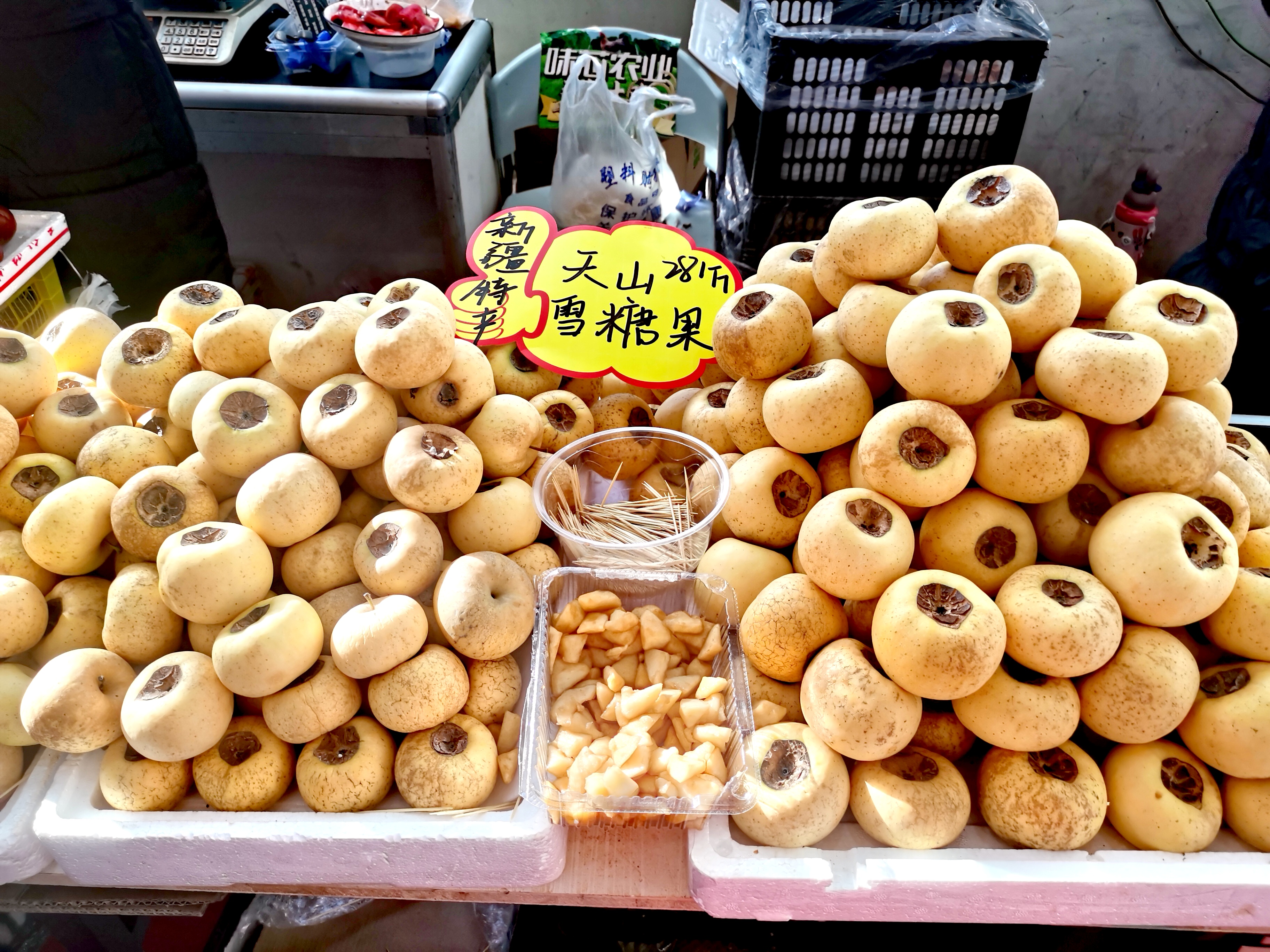 2月2日,新京报记者在北京年货大集注意到,多个摊位正在售卖一种名为“天山雪糖果”的水果,摊主介绍其为“新疆特产,生长在天山脚下,营养价值丰富”。记者驻足品尝后感觉甜度明显高于一般水果。随后,记者在另一摊位也发现同款水果,该摊主则直接表示是“新疆特产的苹果,属于稀有品种”。