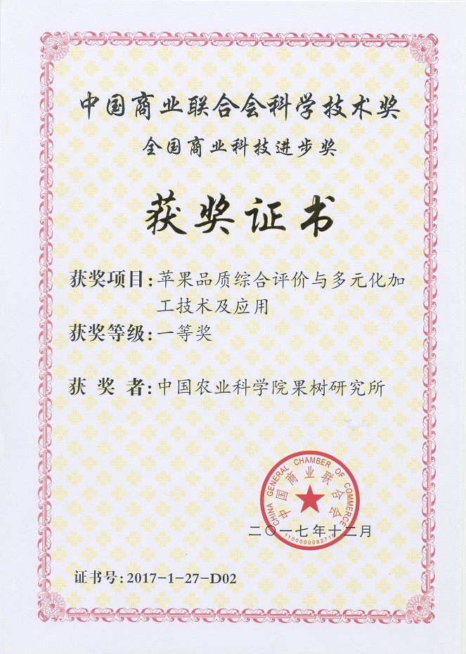 6)承担果品质量安全标准研究及国家、行业、地方、团体果品质量标准制定工作。